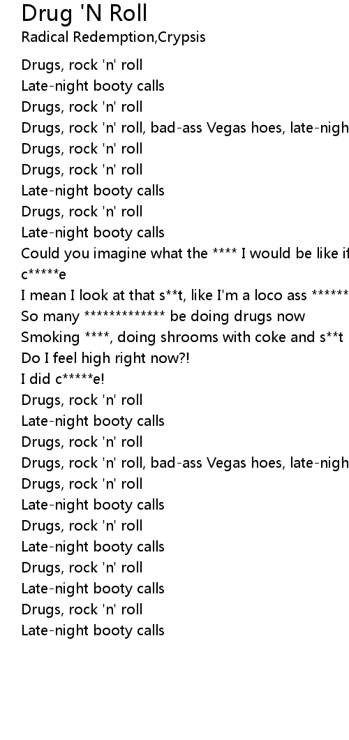 | [03:13.82]Drugs, rock 'n' roll, bad-ass Vegas hoes, late-night booty calls [2x] |