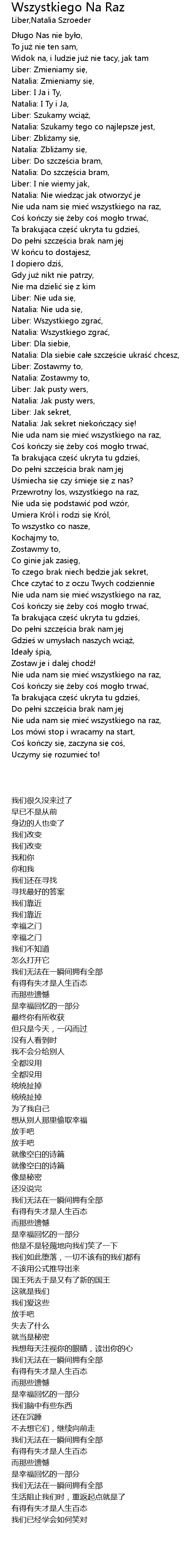 | [00:43.300] | Nie uda nam si mie wszystkiego na raz, |
