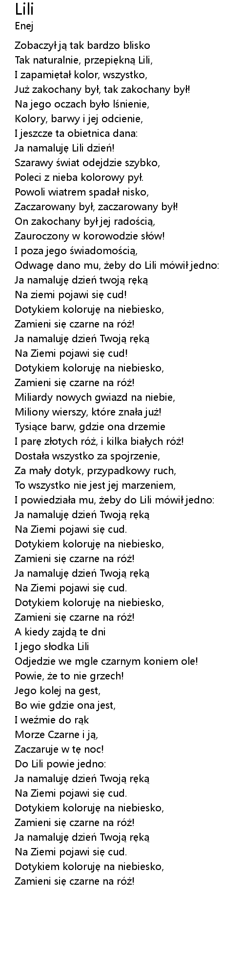 | [00:03.00] | Tak naturalnie, przepiękną Lili, |