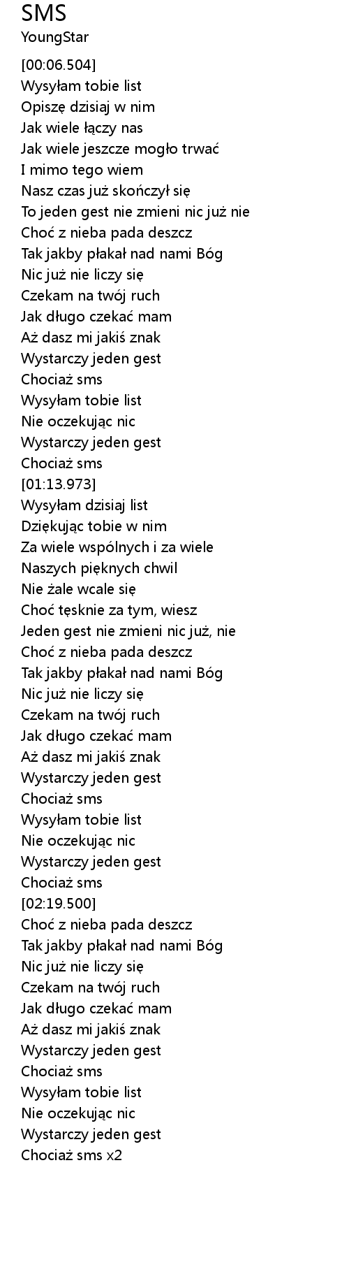 | [01:36.503] | Jeden gest nie zmieni nic ju, nie |