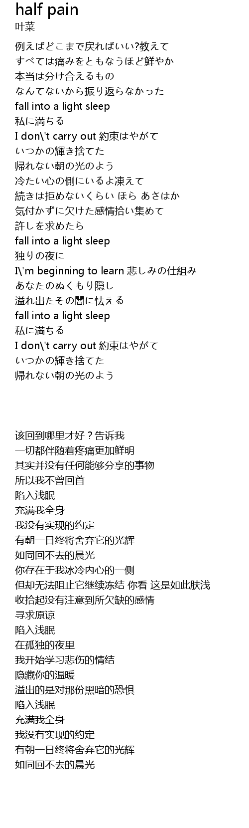 | [02:14.24] | fall into a light sleep |