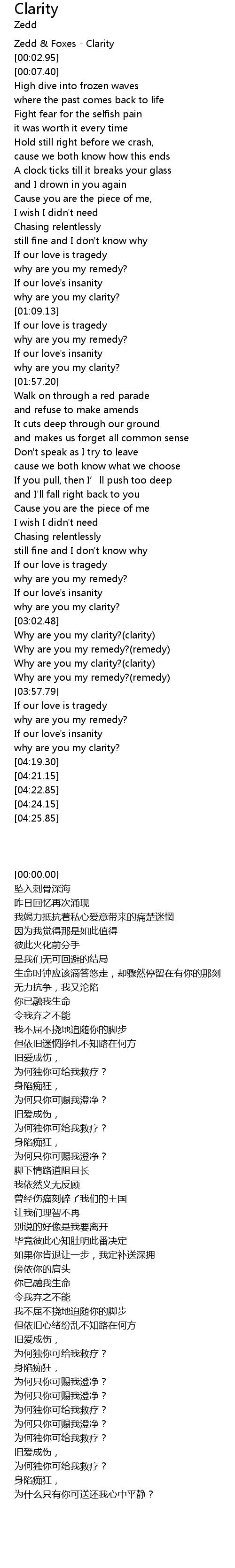 | [03:43.64] | Why are you my clarity?(clarity) |