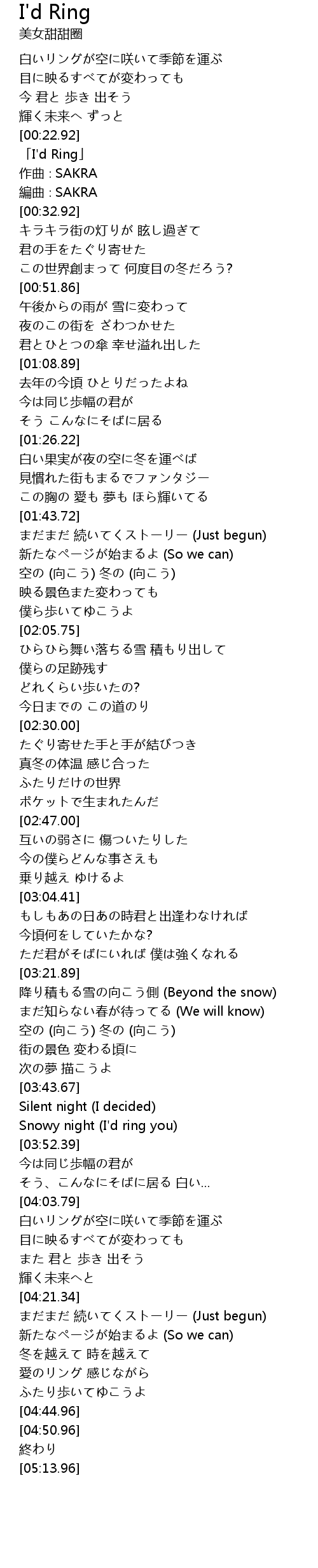 | [04:04.57] | 白いリングが空に咲いて季節を運ぶ |