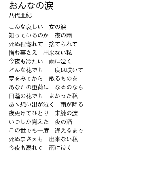 今夜も溺れて 雨に泣く |