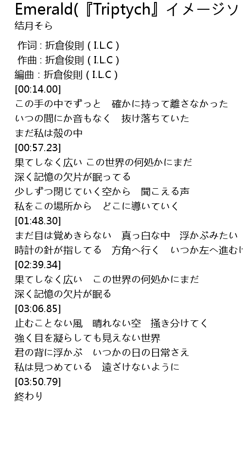 | [01:24.68] | 少しずつ閉じていく空から 聞こえる声 |