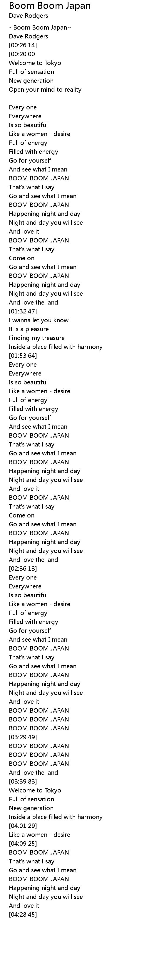 | [03:26.18] | BOOM BOOM JAPAN |