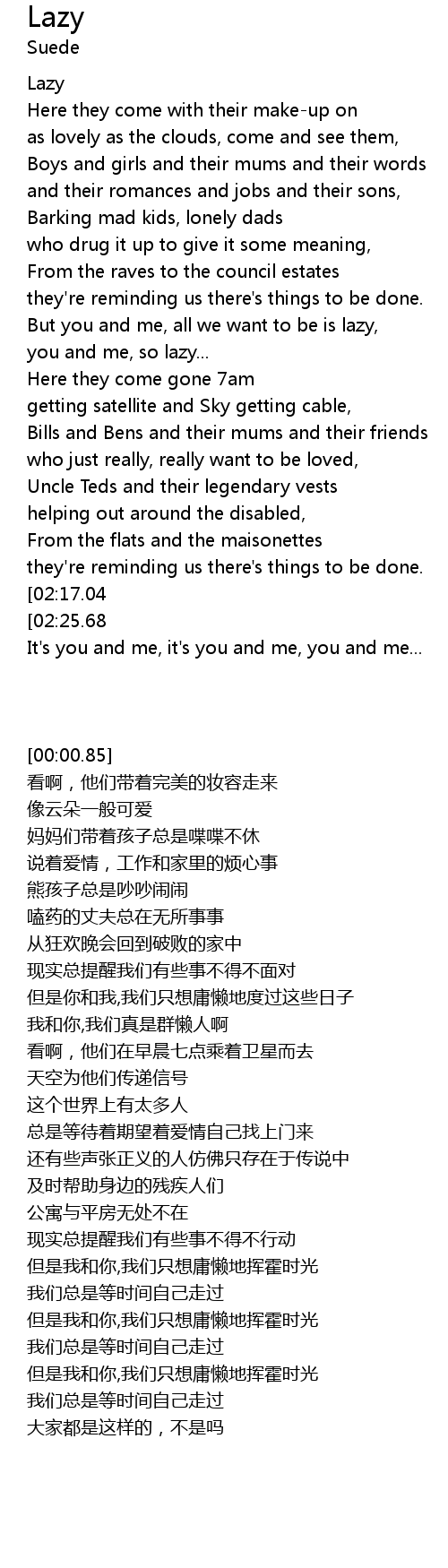 But you and me, all we want to be is lazy, |