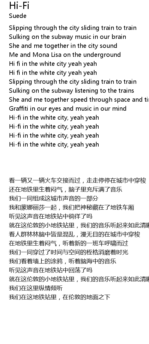 Hi-fi in the white city, yeah yeah |