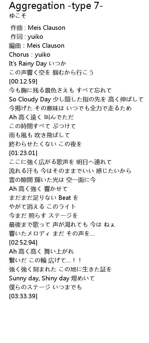 | [00:36.04] | So Cloudy Day 少し隠した指の先を 高く伸ばして |
