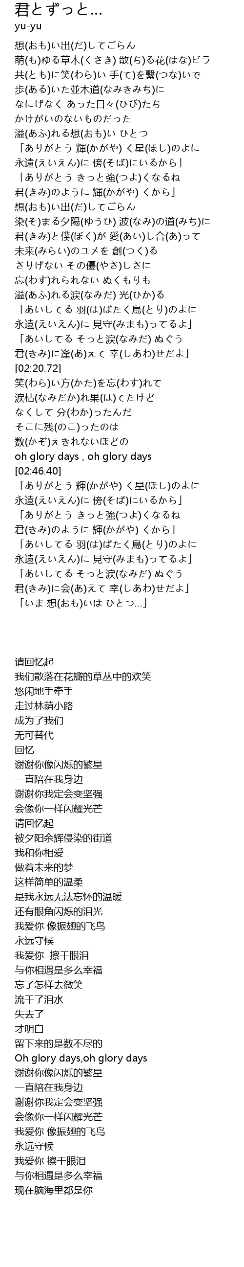 | [01:58.22] | 君(きみ)に逢(あ)えて 幸(しあわ)せだよ」 |