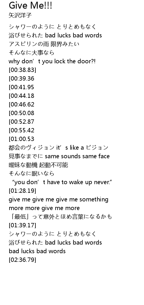 | [02:37.27][00:39.36] | give me give me give me something |