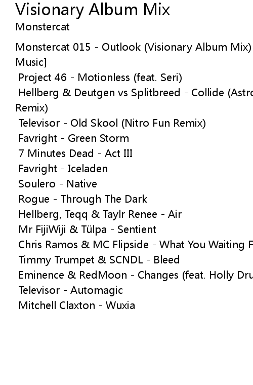 | [00:00.00]Monstercat 015 - Outlook (Visionary Album Mix) [1 Hour of Electronic Music] | |