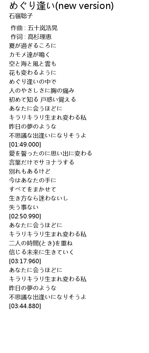 | [02:59.310] | キラリキラリ生まれ変わる私 |