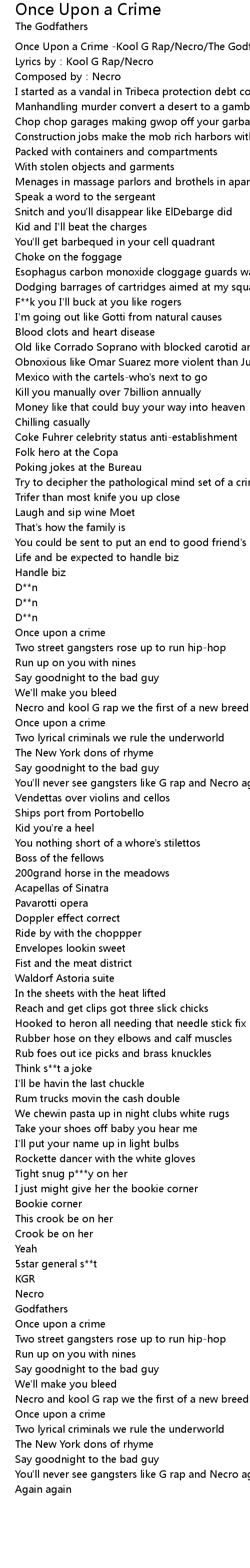 | [00:00.258] | Once Upon a Crime Kool G Rap Necro The Godfathers |