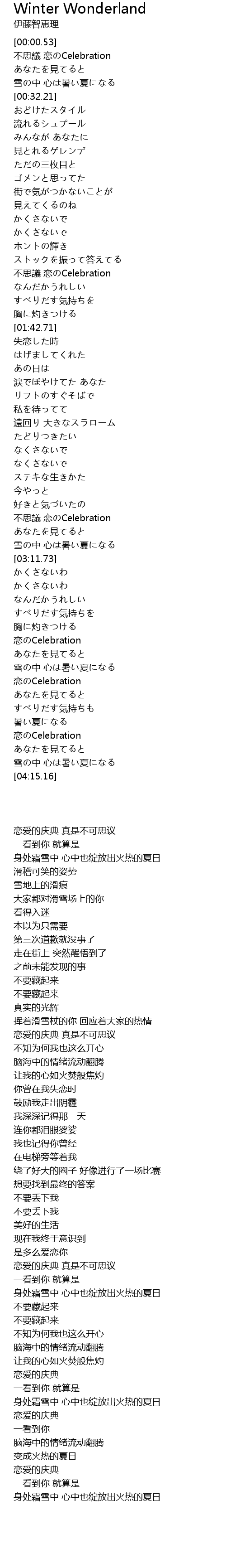 | [02:53.39] | 不思議 恋のCelebration |