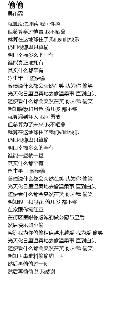| [00:32.02] | 仍旧很谦卑只算偷 |