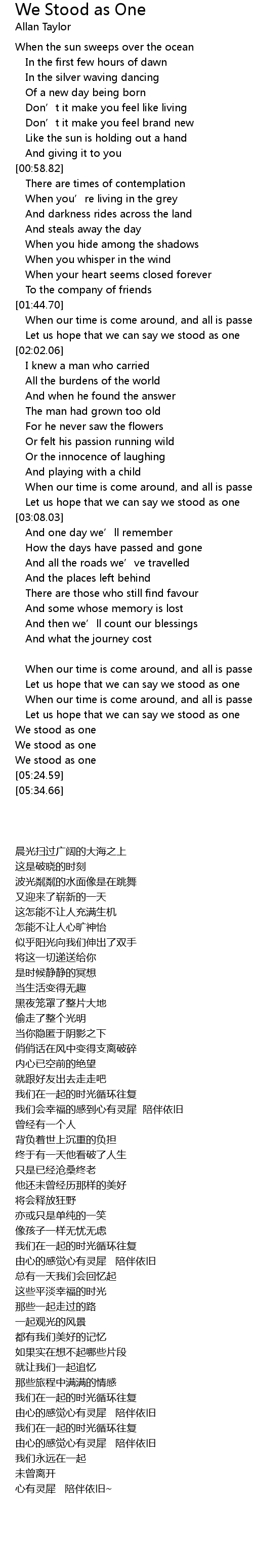 | [05:03.34] | Let us hope that we can say we stood as one |