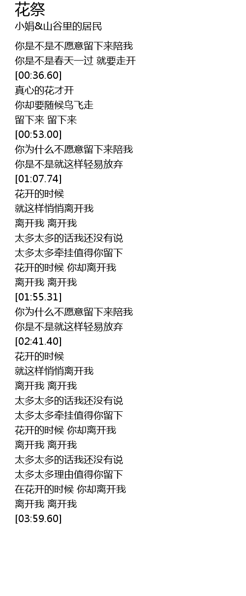 | [01:41.32] | 花开的时候 你却离开我 |