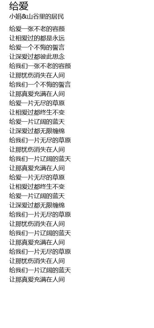 | [01:06.52] | 给爱一片无尽的草原 |