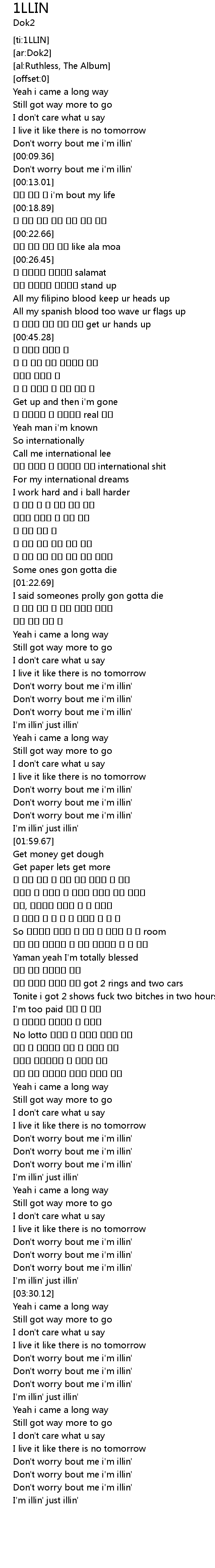 | [03:09.24] | Don't worry bout me i'm illin' |
