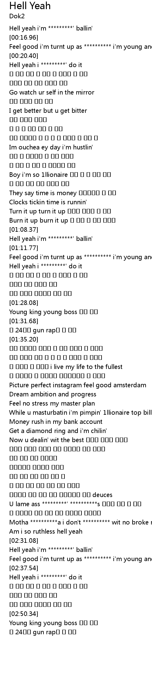 | [02:31.64] | Hell yeah i'm *********' ballin' |