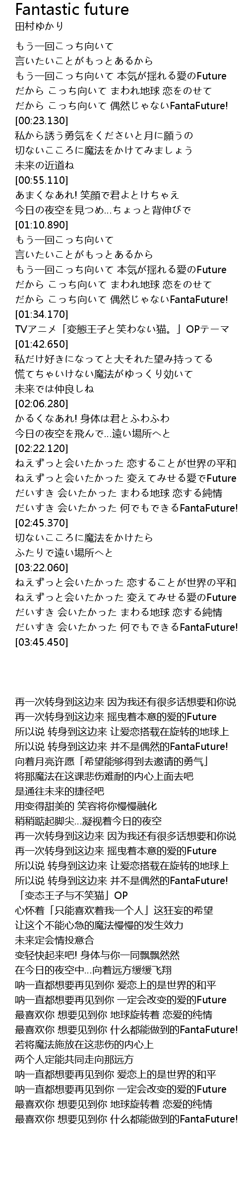 | [02:39.480] | だいすき 会いたかった 何でもできるFantaFuture! |