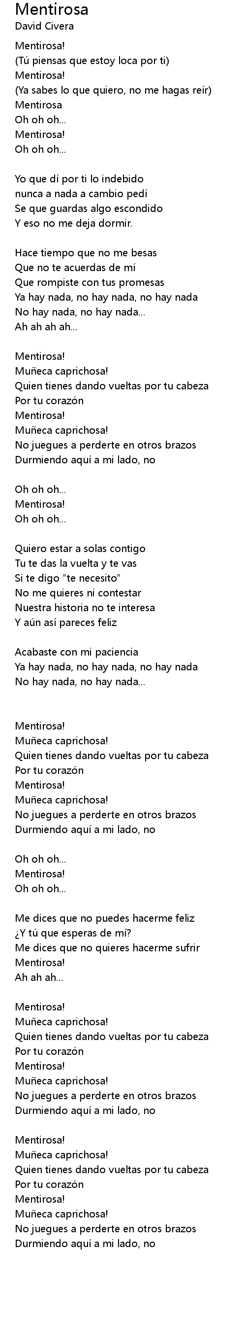 | [ De: http://www.dicelacancion.com/letra-mentirosa-david-civera ] | |