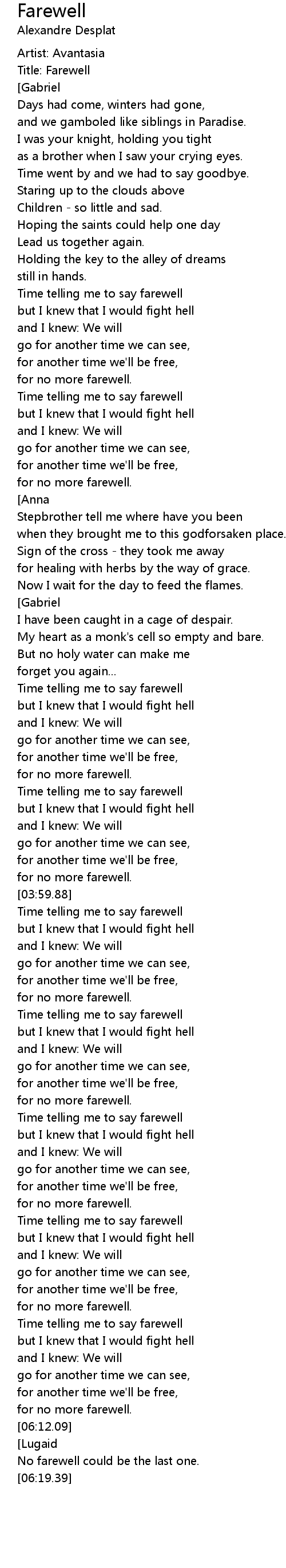 Farewell Lyrics
