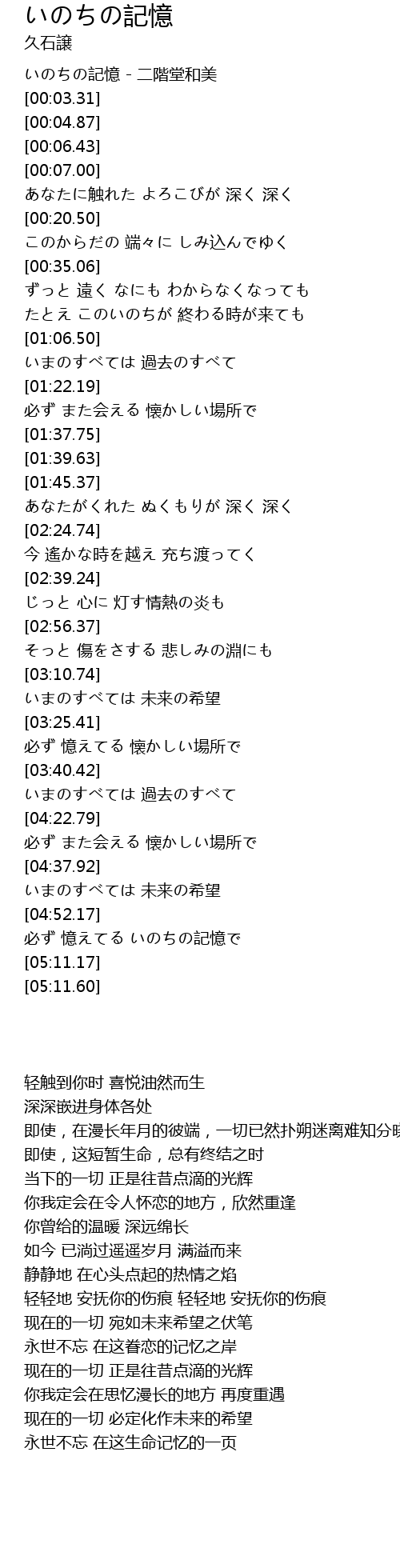 いのちの記憶 - 二階堂和美 |