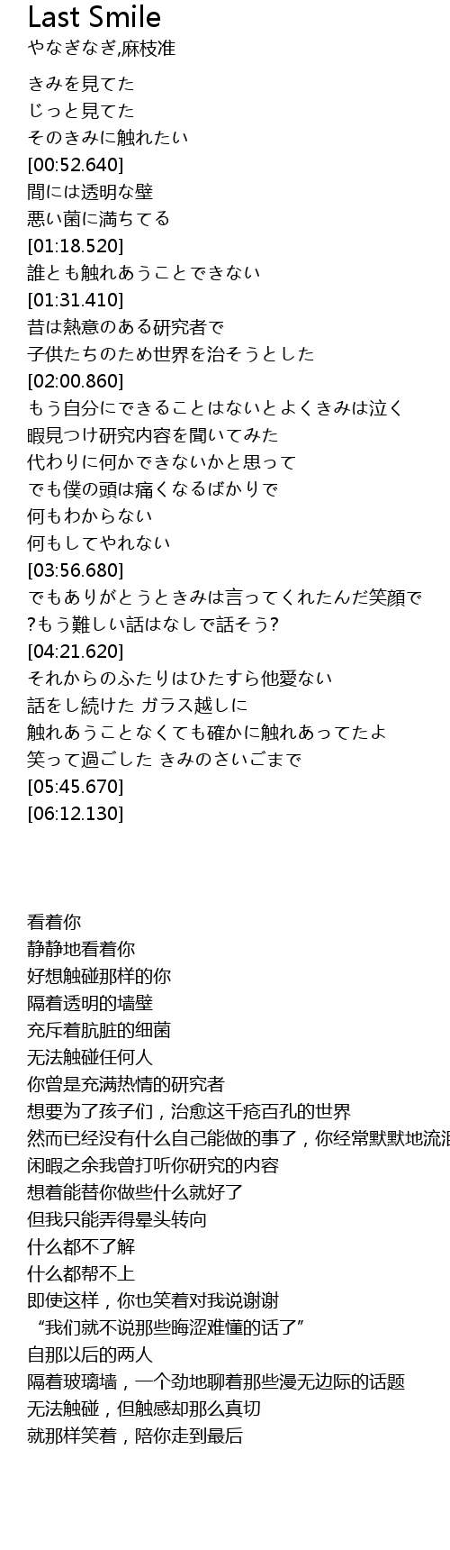 | [05:29.370] | 笑って過ごした きみのさいごまで |