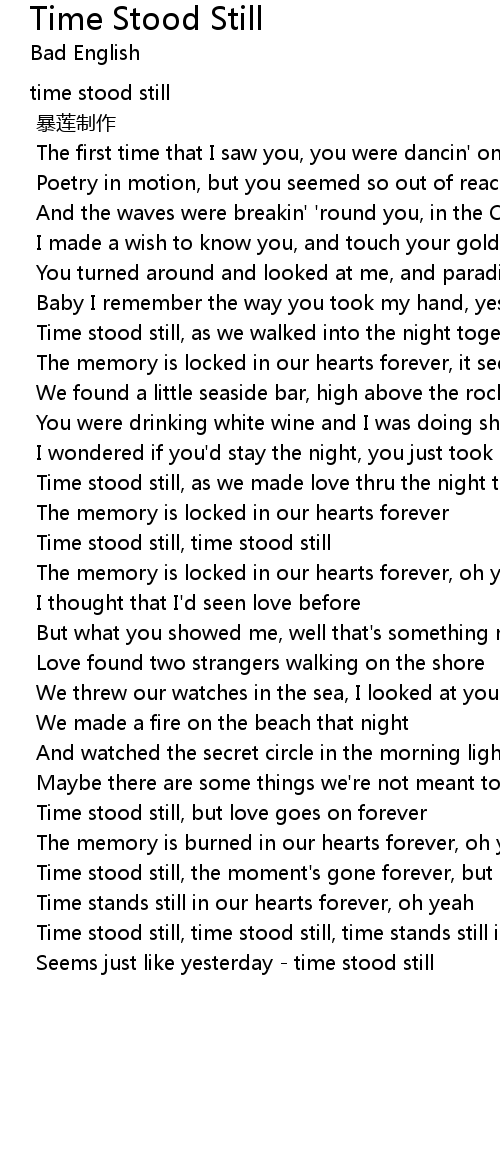| Time stood still, time stood still, time stands still in our hearts forever | |