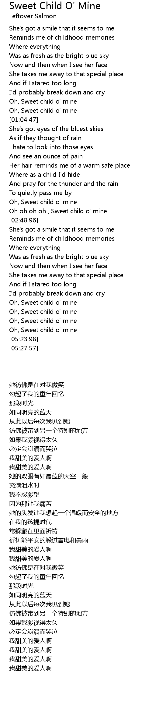 Oh oh oh oh , Sweet child o' mine |