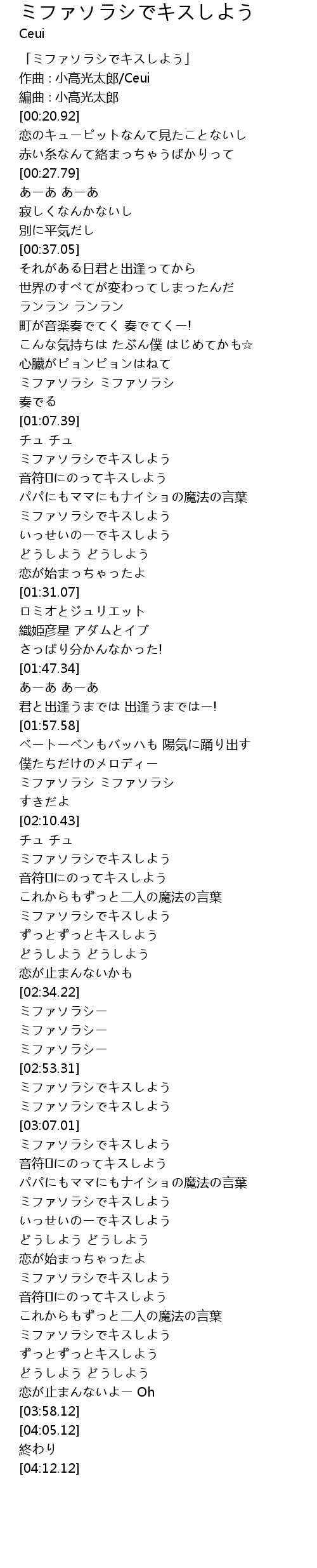 | [00:00.92] | 「ミファソラシでキスしよう」 |