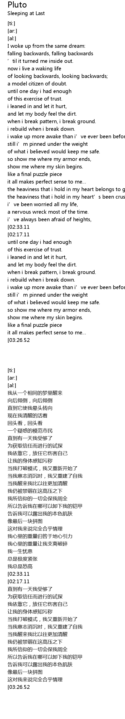 | [03:07.63] | still i’m pinned under the weight |