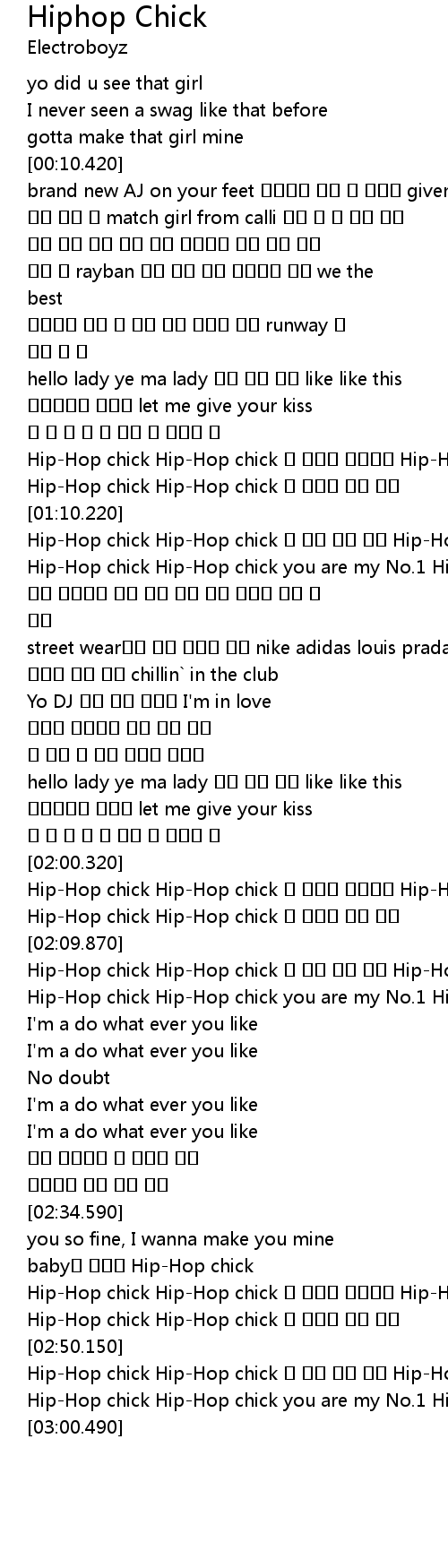| [02:55.860] | HipHop chick HipHop chick you are my No. 1 HipHop chick |