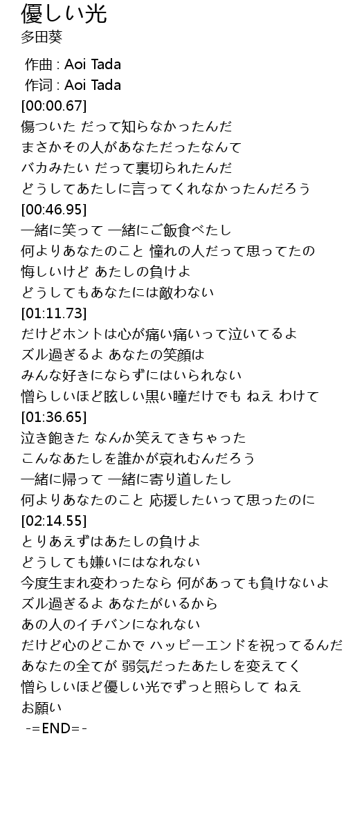 | [00:00.00] | 作曲 : Aoi Tada |