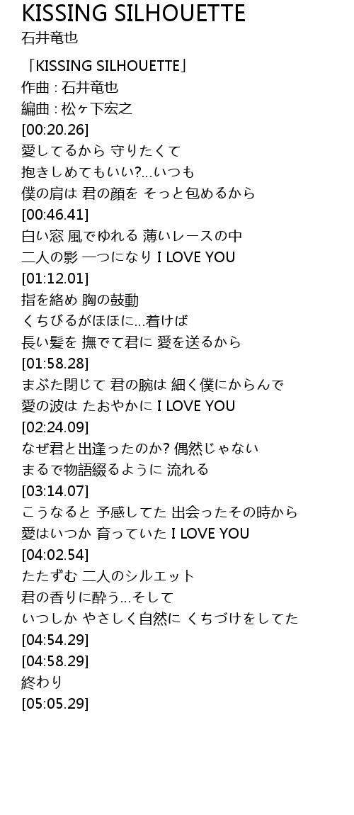 | [00:00.26] | 「KISSING SILHOUETTE」 |
