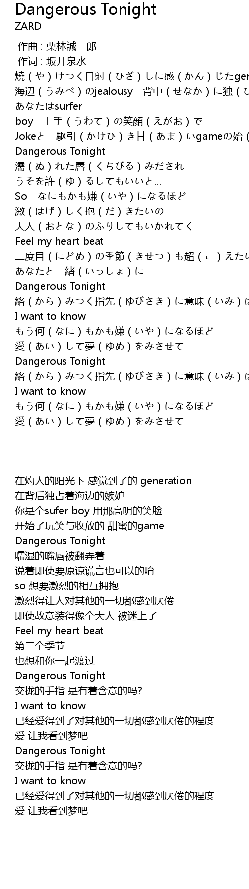 | [00:43.35] | 海辺(うみべ)のjealousy 背中(せなか)に独(ひと)りじめ |
