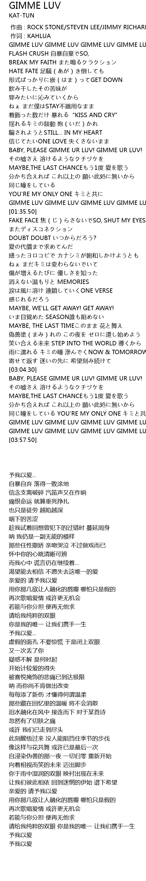 | [03:47.30] | GIMME LUV GIMME LUV GIMME LUV GIMME LUV |