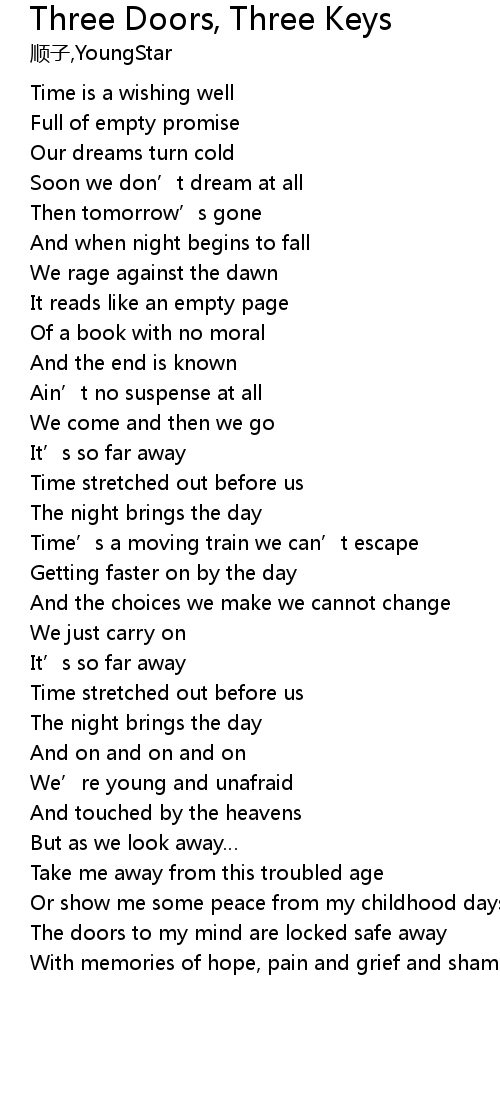 | [07:01.230] | The doors to my mind are locked safe away |