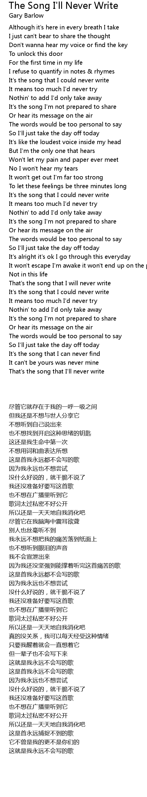That's the song that I will never write |