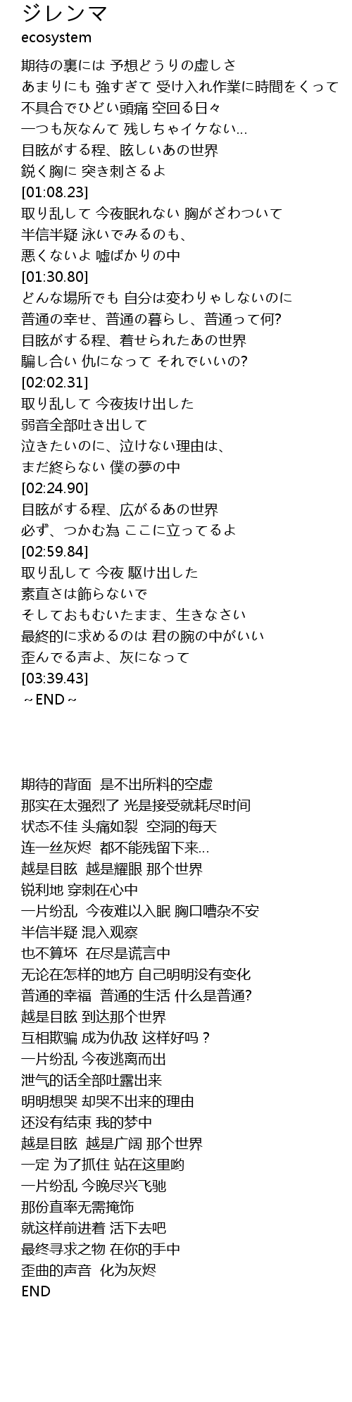 | [03:32.34] | 歪んでる声よ、灰になって |