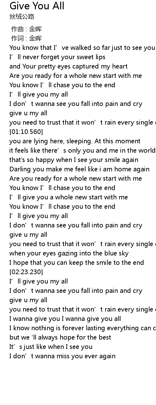 | [00:45.570] | I don’t wanna see you fall into pain and cry |