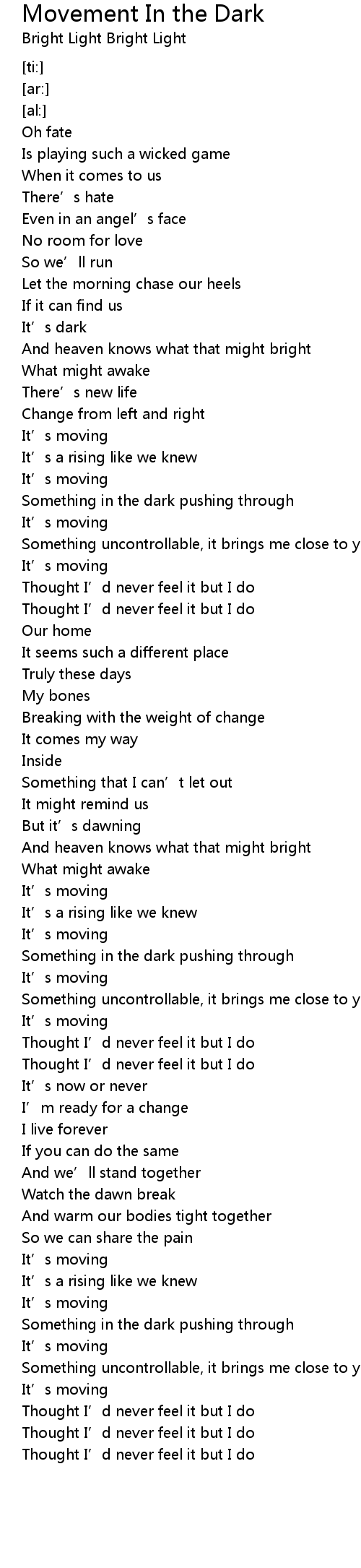 | [03:51.33] | Something uncontrollable, it brings me close to you |