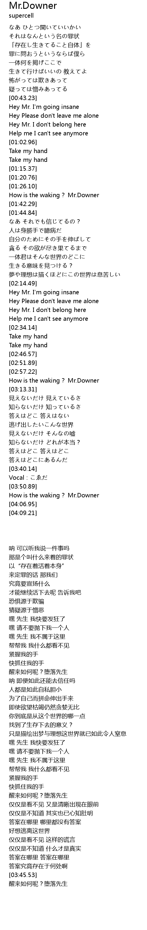 | [00:43.64] | Hey Mr. I' m going insane |