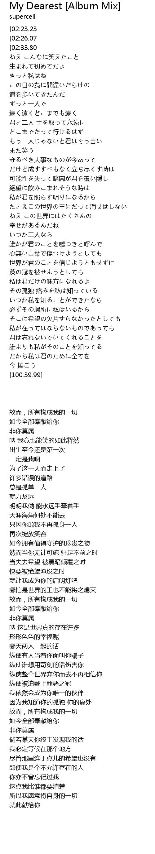 | [03:26.36] | 私は君だけの味方になれるよ |