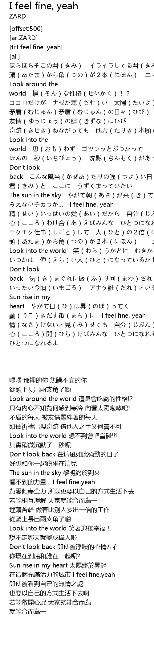 | [02:58.38] | dòng jiē I feel fine, yeah |