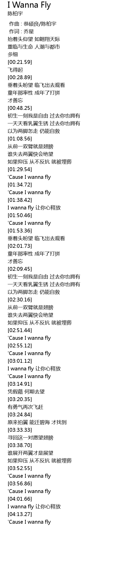 | [04:14.14] | ' Cause I wanna fly |