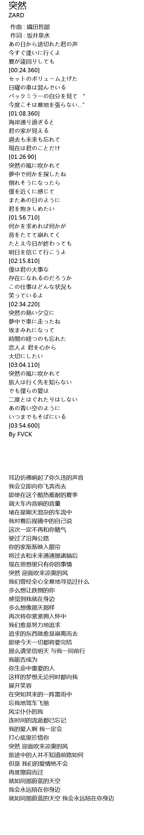 | [00:00.00] | 作曲 : 織田哲郎 |