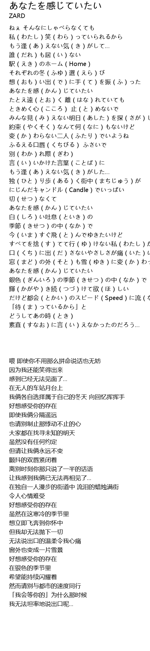 | [03:46.460] | あなたを感(かん)じていたい |